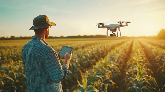 Drones help farmers monitor crops and manage fields easily. They can take images, check crop health, and spray fertilizers or pesticides. This saves time, reduces labor, and improves farming efficiency.